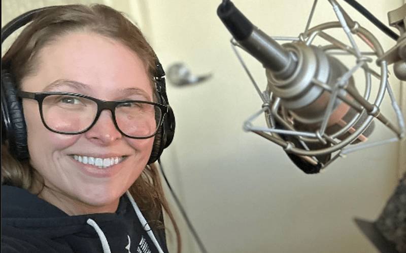 "Peek behind the scenes 👀 @rondarousey has been in the studio recording the audio edition of OUR FIGHT!