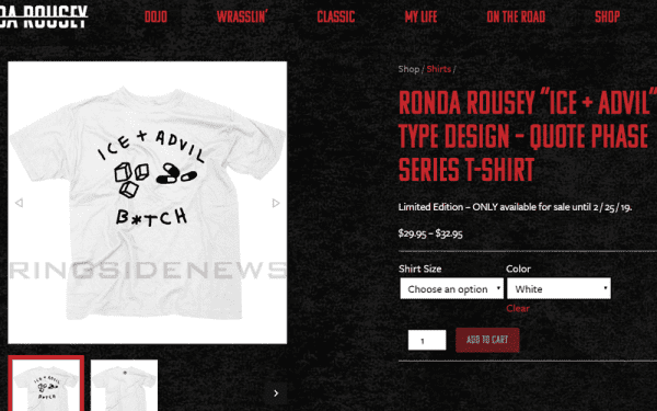 The RAW Women’s Champion is selling merchandise on her official website featuring some phrases she’s been using on WWE. You can check out some of those designs below. She actually has two “Ice and Advil, bitch” shirts.