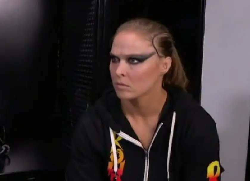 We’re not sure what kind of look Ronda Rousey was looking for, and maybe she’s got some kind of ring attire planned to tie everything together. But as soon as WWE showed Ronda Rousey sitting in the locker room during the kickoff show, the internet exploded with comments.