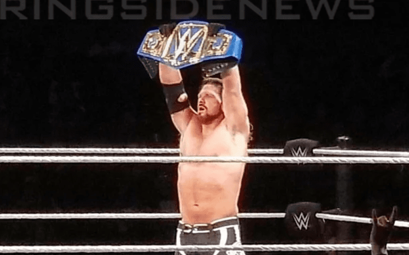 This new WWE Title belt is blue which matches the SmackDown Live brand. After all, RAW’s top title is red (although you never see it when Brock Lesnar is the champion). However, AJ Styles took the mic at WWE’s live event in Syracuse and explained that the new blue title is not officially endorsed by WWE.