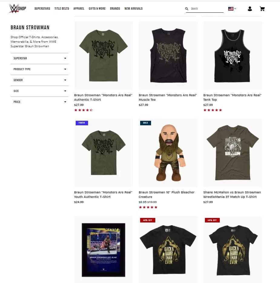 WWE has taken the “New” flag off of those items. It was obviously placed there in error. Braun Strowman’s merchandise is actually on sale for the most part. For some reason, the WrestleMania 37 t-shirt for Strowman vs Shane McMahon is still listed at $28.