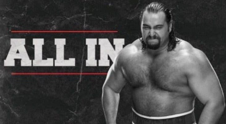There are actually a couple different designs floating around featuring Rusev in front of the All In logo but they are all fake. Although they might look convincing especially the one that appears to be tweeted out by the Bulgarian Brute, this is just another combination of creative fans and wishful thinking.