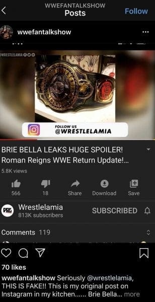 A rumor popped up online that said Brie Bella accidentally posted an image of the Intercontinental Title. Her husband Daniel Bryan is set to battle AJ Styles for that title and fans thought this was a spoiler.