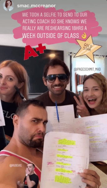 “We took a selfie to send to our acting coach so she knows we really are rehearsing 18 hrs a week outside of class.”