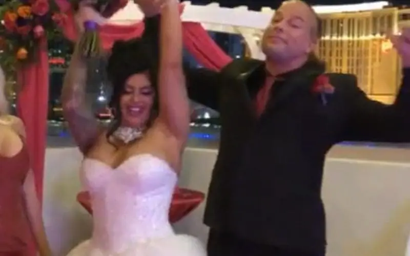 Karrion Kross and Scarlett Bordeaux shared the special day with RVD. Podcaster Jeff Meacham shared photos from the ceremony which were taken by and credited to Scarlett. He congratulated the newlyweds in his caption.