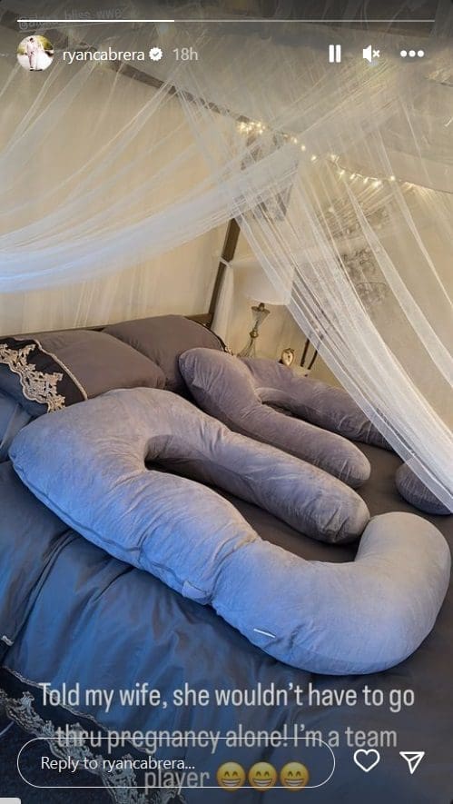Ryan Cabrera posted on his Instagram story to reveal what his current bed situation looks like. Since Alexa Bliss is pregnant, that requires a special pillow to really help her sleep. He won’t let Bliss do that alone, either.