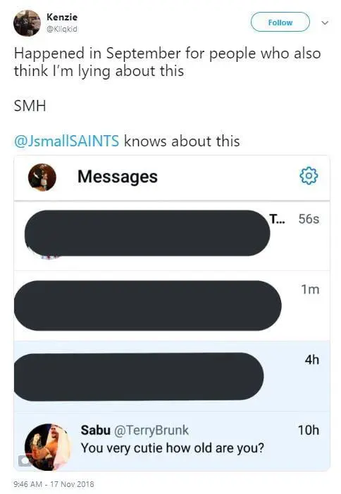 In an update to this story, that same Twitter user has opened up about another famous wrestler she has had interactions with. While not as messed up as the situation with Ellsworth, the fan has revealed 53-year-old Terry Michael Brunk, who works as Sabu had also sent her messages. The wrestler had called her a “cutie” and asked how old she was.