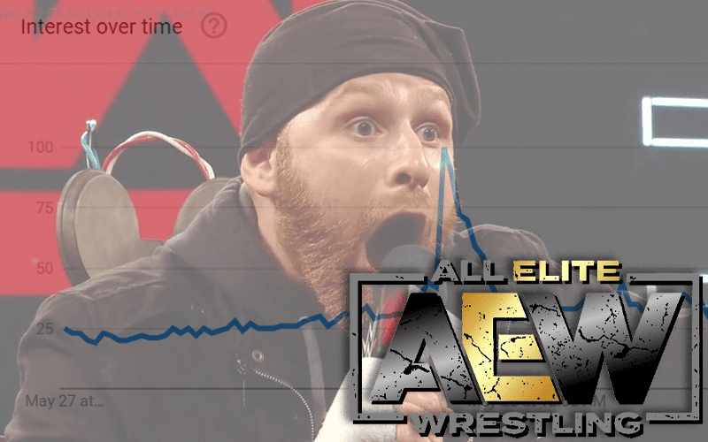 Bryan Alvarez had a caller on Wrestling Observer Live note that when Sami Zayn said AEW on WWE television that their Google trend skyrocketed. We did a little digging and wouldn’t you know? That’s exactly what happened.