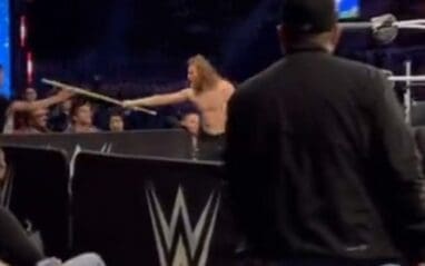 Zayn spiked his kendo stick on the mat when he was done with it, and it went flying into the crowd. A fan video captured a fan snatching the kendo stick out of mid-air. Then security took it away from them.