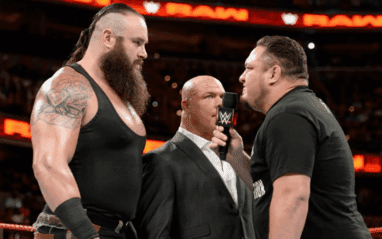 While speaking with Alarabiya, Samoa Joe was asked about possibly teaming with Braun Strowman as his mystery partner at this year’s WrestleMania. Joe seemingly shot down the idea by saying that he could see himself turning on Braun two minutes into the match.