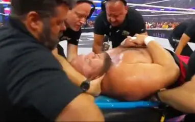 After the match, Claudio Castagnoli wrapped a chair around Samoa Joe’s leg and stomped on it, leaving Joe completely taken out and in pain. Fans were in shock as medical personnel checked on Samoa Joe. Afterwards Samoa Joe was being stretchered out as fans were incredibly worried for his well-being.