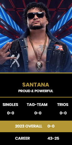 Santana sustained a knee injury during an episode of Dynamite in June of last year, while performing a uranage on Daniel Garcia during the Blood and Guts match. This caused him to take time off to recover from the injury.