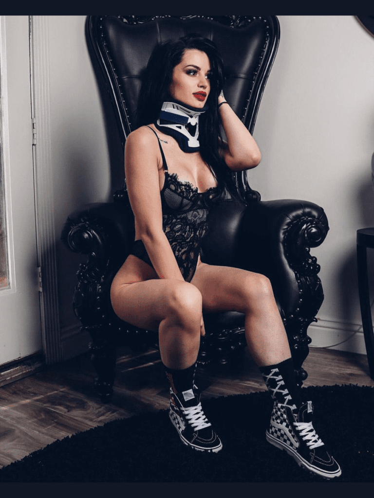 Noelle Foley recently revealed that she underwent surgery and has been wearing a neck brace since then. Due to this, she decided to do a photoshoot, inspired by Saraya. Naturally, Saraya saw this and took to Twitter to show fans the throwback photo as well, where she wore black lingerie.