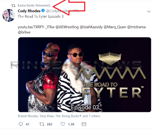 In a move that we didn’t really see coming, Sasha Banks retweeted the third installment of Road To Fyter Fest which contained Brandi Rhodes’ announcement of an AEW Women’s Title.