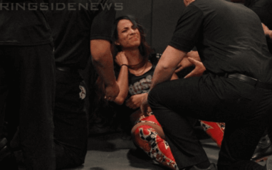 This week on RAW, Banks took a small bump on the barricade and she was led off to leave Bayley alone in the ring. This did not work well for The Hugger because she ate a pinfall.