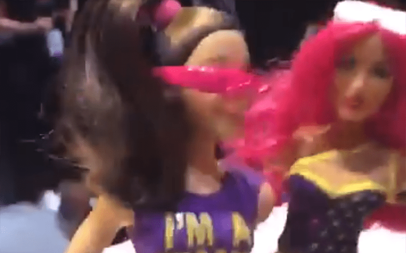 Sasha Banks posted footage of herself playing with two WWE Mattel dolls. One doll was of her and the other was Bayley and she used her doll to beat up the Bayley one. You can check out the clip embedded below: