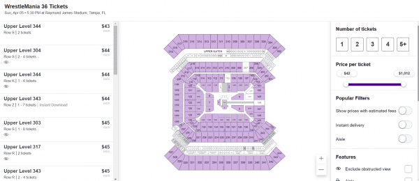 You can check out a screenshot of the current Stub Hub seating chart below. As WrestleMania draws closer and the company starts to announce matches they might move tickets faster. Still, with a destination event like WrestleMania a lot of people who are going would normally have their tickets by now.
