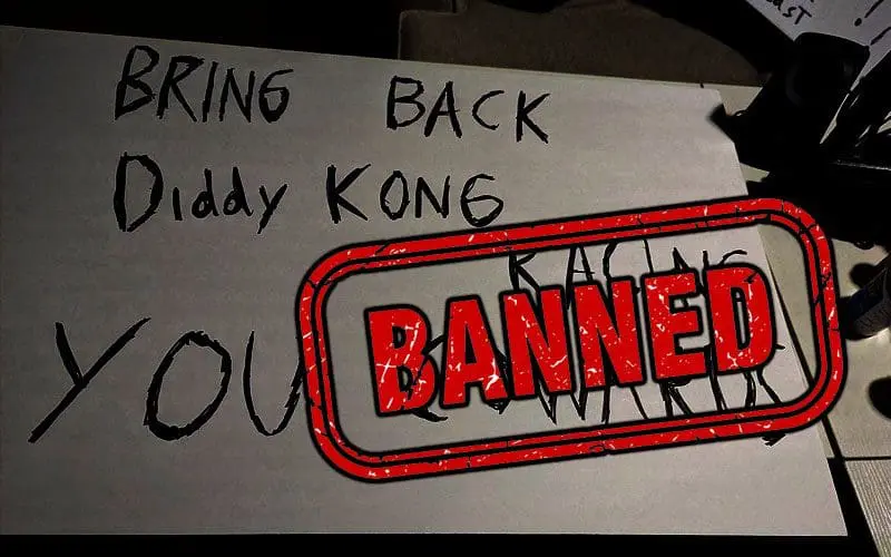 The sign with ‘Bring Back Diddy Kong Racing You Cowards’ written on it was taken away by a security officer named Tara which the fan revealed to be a bad start to his much anticipated night.