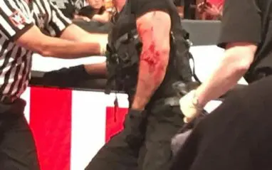 As you can see by the photos below, he had a little bit of a bloody mess thanks to the post-match beatdown on Raw this week.