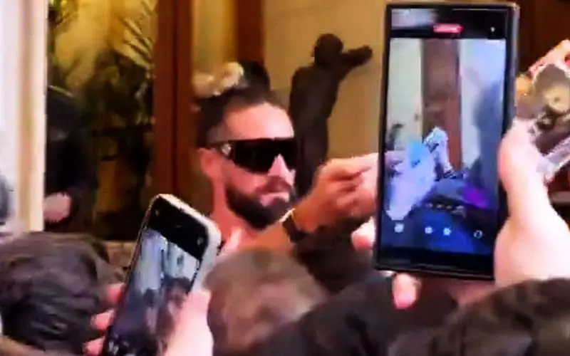 Ringside News has obtained footage showing Rollins being completely swarmed by a massive group of fans outside his hotel before the March 22 SmackDown taping. In the video, Rollins can be seen visibly overwhelmed as he tries to navigate through the crowd, repeatedly saying, “You have to let me through guys.”