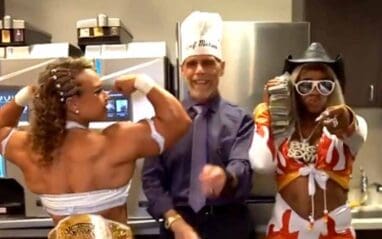The trio can be seen in a kitchen setup where Grace shuts the door to an appliance with Sexyy Red announcing, “I’ve got two coming in hot!” and Shawn Michaels humorously donning a chef’s hat in homage to his iconic DX segment from 2009 and declaring NXT Battleground a “five-star meal.” The video wrapped up with Michaels posing alongside Grace and Red, capturing the spirited atmosphere of the evening.