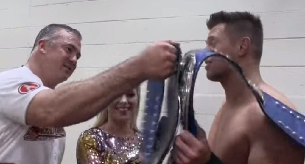 The Miz’s father was ringside for their match and got to celebrate with the Best Friends after they won. Then the new champs continued the celebration backstage. The Miz called winning those titles a “dream come true” as he continued gushing to Shane backstage.