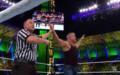 Suddenly, as The Miz left the ring, he slipped and started selling his leg. Nobody checked on him and they mentioned it on commentary — so this was likely a work. The Miz couldn’t make it back into the ring and the match hadn’t even started yet. Shane McMahon asked The Miz if he could do it as well — after all, if The Miz loses the match then by Shane’s decree it would cost him his job.