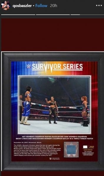 Shayna Baszler uploaded a screenshot on her Instagram of herself standing in the ring with Bayley and Becky Lynch. This photo was actually of a plaque that WWE sells on their website.