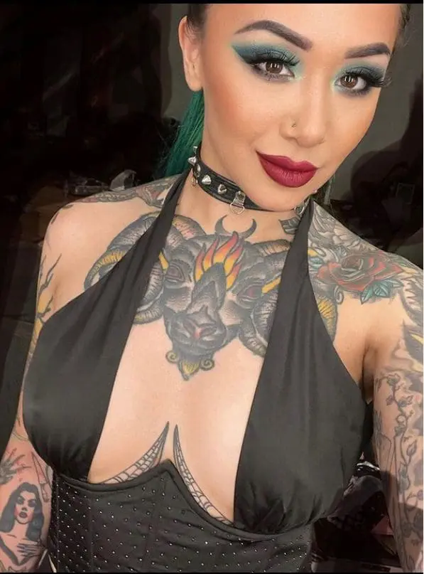 Shotzi’s stunning photo showed ample skin and many of her tattoos. Scarlett on the other hand has an OnlyFans now, and she’s no stranger to showing off what she’s got. Shotzi completed her look by wearing a goth black choker embellished with silver spikes.