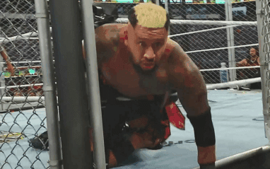 The door of the cage was opened, but Jacob Fatu told the referee to close it, “close the goddamn gate, it’s all gas and no brakes!” he yelled. Solo nailed a Samoan Spike, but then Fatu kicked out. The match carried on and both men eventually found themselves fighting for position and then the MFTs climbed the cage, with Talla Tonga holding handcuffs in his mouth. He handcuffed Jacob Fatu to the top of the steel cage as Solo tried to climb out of the ring, but Fatu broke the cuffs and got to Solo first. This became a will they/won’t they regarding falling to the floor, but then Talla Tonga smashed Jacob with the cage door and Solo climbed to the floor to win the match.