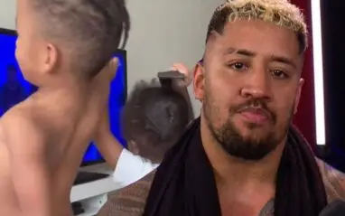 The Enforcer of the faction recently posted a series of photos and videos of his children on Instagram. On the occasion of his son Za’khi’s second birthday, Solo Sikoa’s son can be seen watching The Bloodline on TV as they make their entrance while holding up a replica championship in his hands.