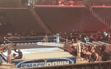 We previously revealed the new stage, but what does it look like in action? Thanks to someone who was very brave about taking photos during rehearsals we have even more info on what the new SmackDown stage and set looks like.
