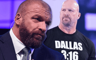 Steve Austin recently told a story during his podcast about a gift he picked up for Triple H over a year before he had a chance to present it to him. He ran across a photographer’s image of Triple H with Motorhead. It was framed and Austin thought Triple H just had to have it.