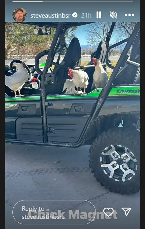 Austin posted a photo of two chickens on an ATV. He picked the caption “Chick Magnet” to go with the photo. Of course, that is what the CM in CM Punk stands for.