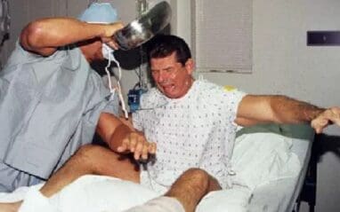 Vince McMahon found himself in a hospital bed with a television camera pointed at him in 1998 in the middle of the Attitude Era. Little did he realize that Mr. Socko, a name that would be forever synonymous with Mick Foley would be invented that night, but Steve Austin would also clock him over the head with a real bedpan.