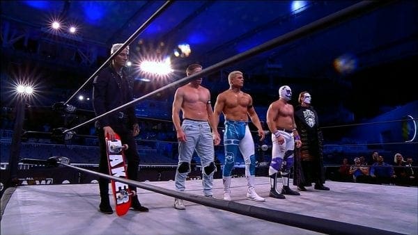 Tony Schiavone made a reference to how Darby Allin is Sting’s new possible protégé. The two helped Cody, 10, and Orange Cassidy run off Team Taz, and then everyone celebrated.