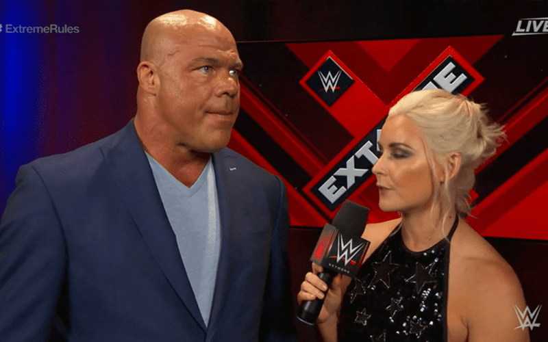 Kurt Angle mentioned on tonight’s WWE Extreme Rules event that Brock Lesnar is refusing to face anyone within WWE and he had to change the #1 contenders match that was supposed to take place.