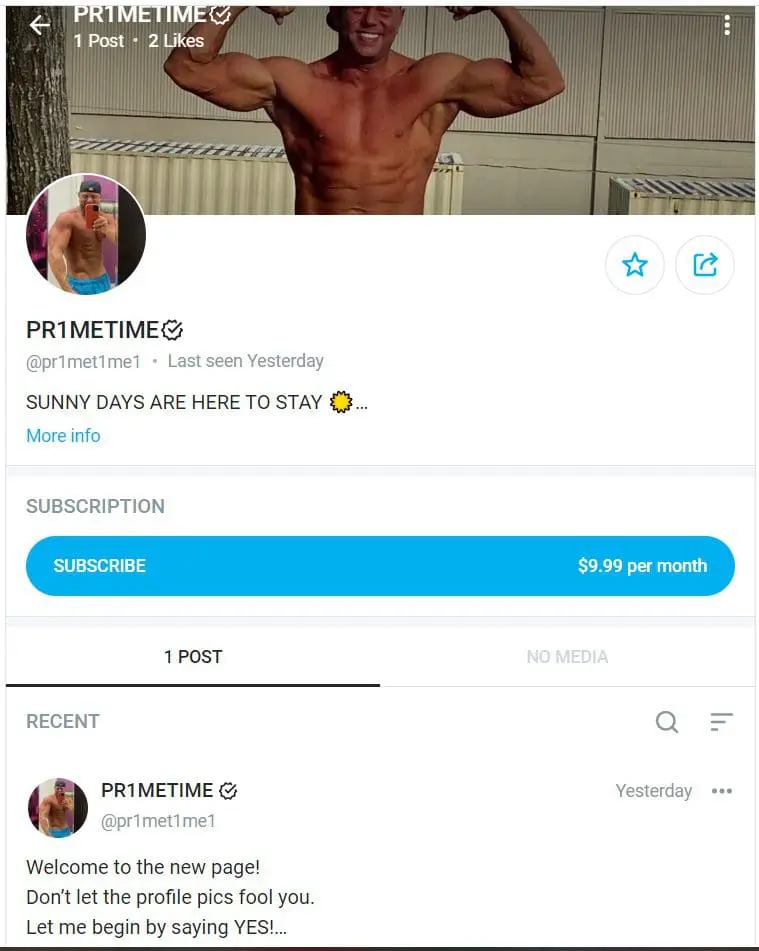 This new account for “PR1METIME” only has one post, and it’s a strange one. The photos on the account are also not of Sunny at all.
