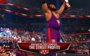 AOP and Murphy chased Owens leaving Rollins open to take a splash from Montez For. Now The Street Profits are the new Raw Tag Team Champions.