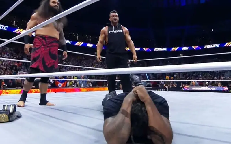 However, the scene took a shocking turn when Swerve’s backup turned on him, brutally attacking the AEW World Champion. They culminated the assault by slamming Swerve through the announcer’s table, leaving Christian Cage watching with satisfaction as his upcoming opponent lay beaten in the ring.