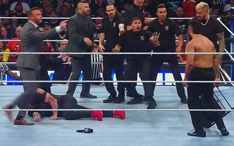 As Owens, who was visibly a bloodied mess, was helped to the back, he broke away to go right after Tama Tonga for attacking him before Solo Sikoa also intervened and the numbers game caught up to him despite the security trying to separate them.