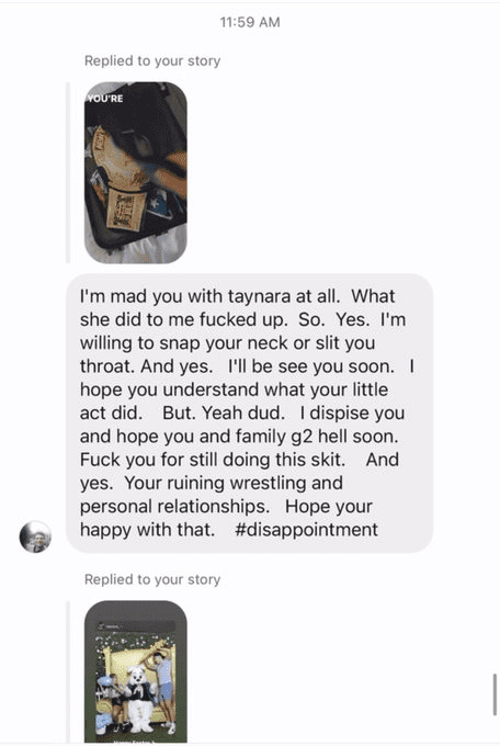 Conti also included a tweet from this aggressive fan that said, “And cuz that imma ruin her life and her future. And really f*ck with Sammy’s home life cuz this happened.” Upon closer examination of this guy’s Twitter account, he seems like an Alexa Bliss fan.