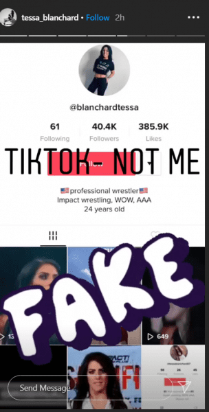 Blanchard wanted to make it clear that she has her own TikTok profile now. @TessBlanchard is the real thing, but right now with 107 followers and 76 likes the real things looks like an imitator.