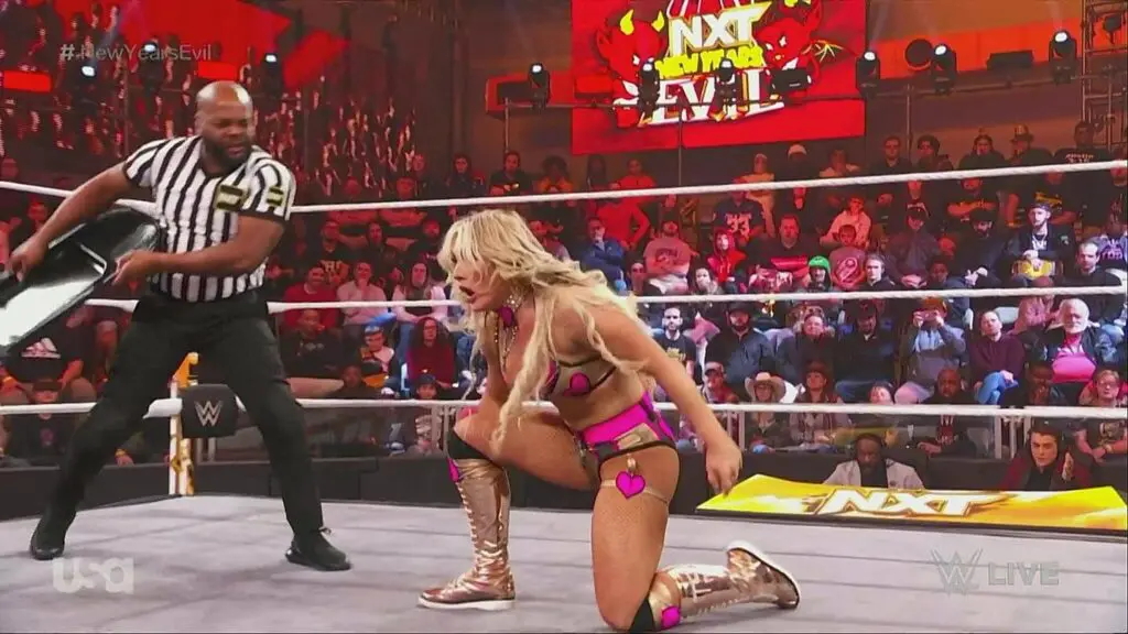 During this week’s special New Year’s Evil edition of WWE NXT on the USA Network, held at the Capitol Wrestling Center in Orlando, Florida, Fallon Henley faced off against former NXT Women’s Champion Tiffany Stratton in a unique stipulation match.