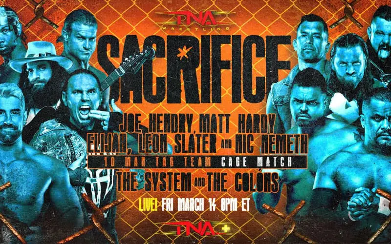 Tonight’s TNA Sacrifice, airing March 14, 2025, promises an action-packed night live from the El Paso County Coliseum in El Paso, Texas. The show sees TNA Knockouts World Champion Masha Slamovich defend her title against NXT’s Cora Jade. Plus, TNA World Champion Joe Hendry, TNA World Tag Team Champion Matt Hardy of The Hardys, Elijah, Leon Slater and “The Wanted Man” Nic Nemeth battles The System (JDC, “The Most Professional Wrestler” Brian Myers and Eddie Edwards) and The Colons (Eddie Colon and Orlando Colon) in a 10-Man Tag Team Match.
