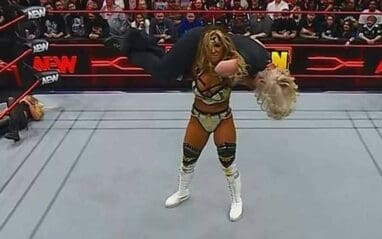 Before Storm could get too deep into her promo, Penelope Ford made a surprise return and ambushed the champion. Storm quickly fought her off, but that’s when the real damage came.