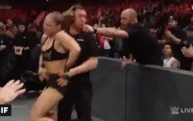 Security started to surround Rousey and she looked like she was going to destroy another member of the security staff. This could cause another huge fine from WWE. Then Browne reached over the barricade and scooped Ronda Rousey up before leading her off through the crowd.