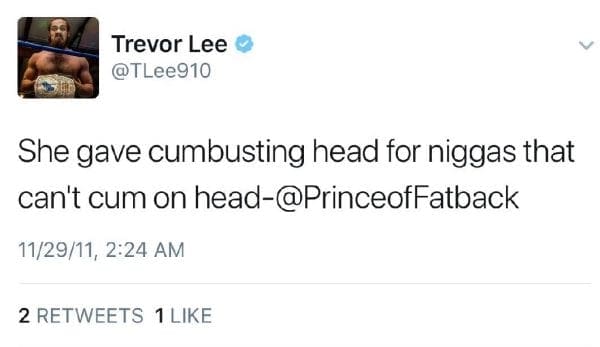 Rovert, a popular member of the Internet Wrestling Community first brought these tweets back into public view once again after being unnoticed for years. Rovert tried to warn Lee to delete his tweets, but people were already sharing them around before Trevor could delete them.
