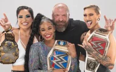 Raquel Gonzalez was in the ring as new NXT Women’s Champion where she cut a promo. After Franky Monet debuted and left, Rhea Ripley came out and they toasted titles. Then Bianca Belair entered as SmackDown Women’s Champion, a title so new for Belair that she still had Sasha Banks side plates.