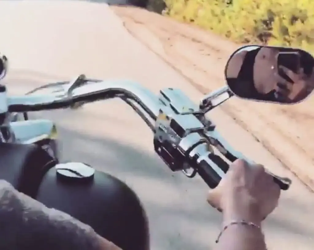 She also included a little video of her trip on the bike and you can see her reflection in the mirror of her capturing things on her cell phone while cars whiz by which is incredibly safe I’m sure. But if it’s the 3 wheeler she rode to the ring on at Mania, then it’s plenty safe.